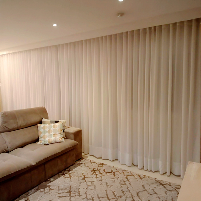 P/ trilho de 6 m, com 8 m de tecido gaze de linho e 9 m de forro oxford. R$1.900,00